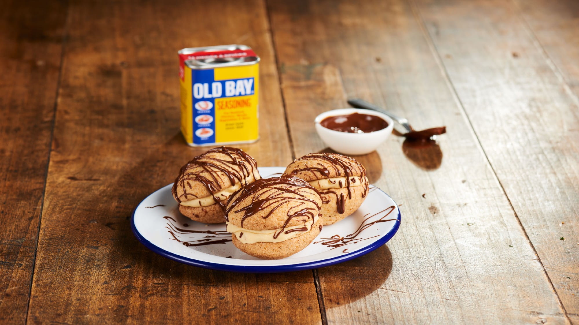 - 4 Prepare the OLD BAY sugar topping: in a shallow bowl, mix together the sugar, OLD BAY seasoning and Schwartz cinnamon. Set aside.