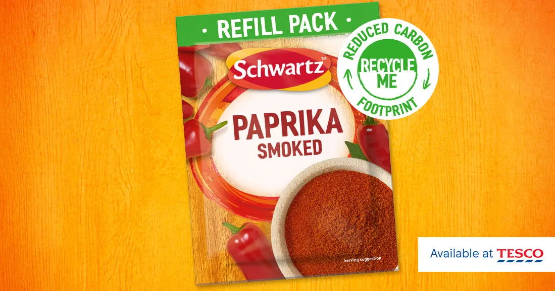 Use a Schwartz Smoked Paprika refill sachet instead of purchasing another 40g glass jar to result in a 40% carbon footprint reduction. Refilling your Schwartz glass jar is a great way to help the environment with sachets producing less emissions than glass jars, so you can continue to create flavourful meals while knowing you’re making a positive difference.