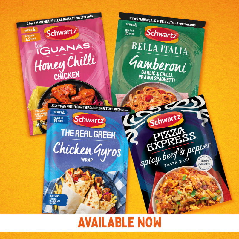 Create restaurant-inspired meals at home with Schwartz & Pizza Express.