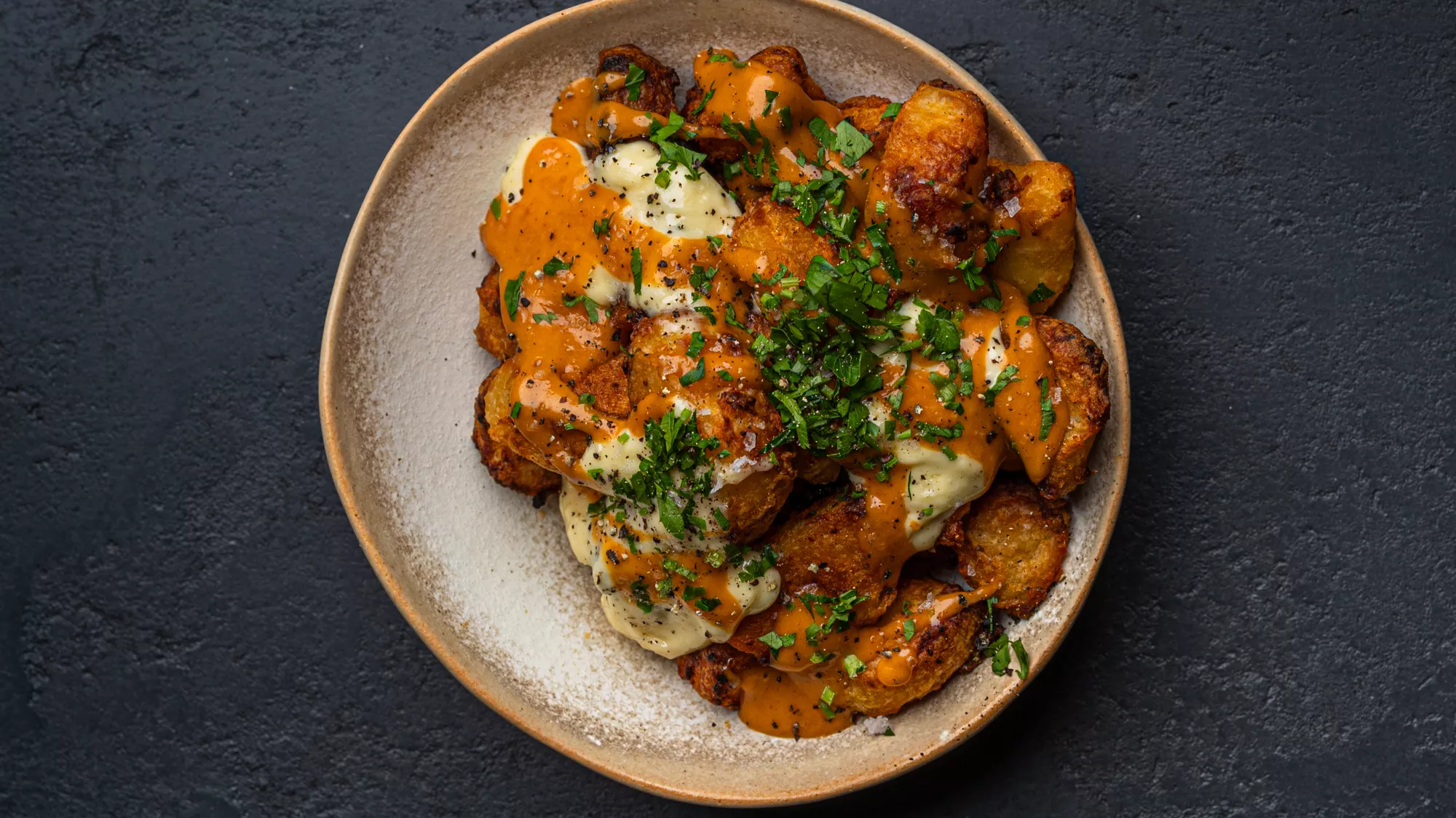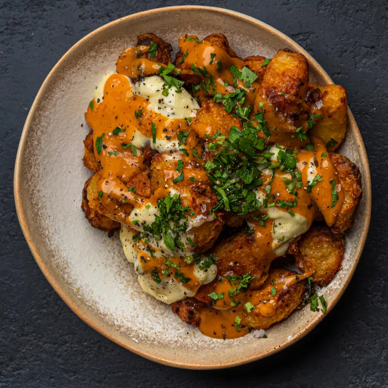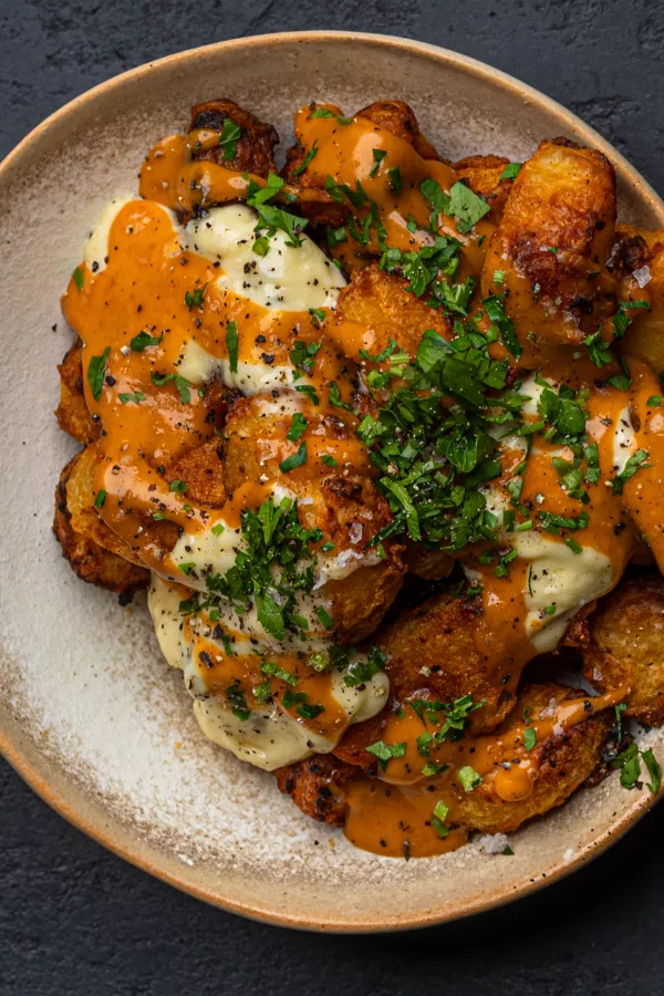 @eatlikeanadult Smoky Roast Potatoes with Salsa and Garlic Mayo